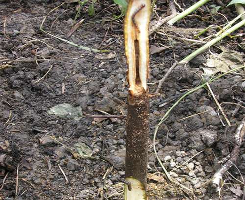 - Melombong pada bahagian batang pokok kecil di nurseri