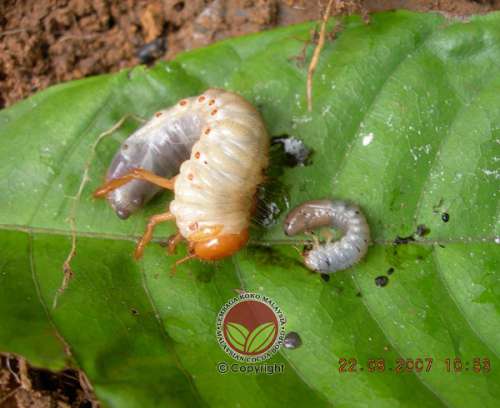 - Larva berwarna krim, mempunyai kepala keras berwarna kuning kecoklatan ataupun coklat gelap berukuran sekitar 0.5cm