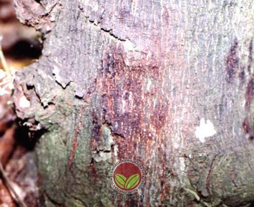 - Terdapat tompok-tompok yang lembab pada kulit di bahagian pangkal batang pokok koko