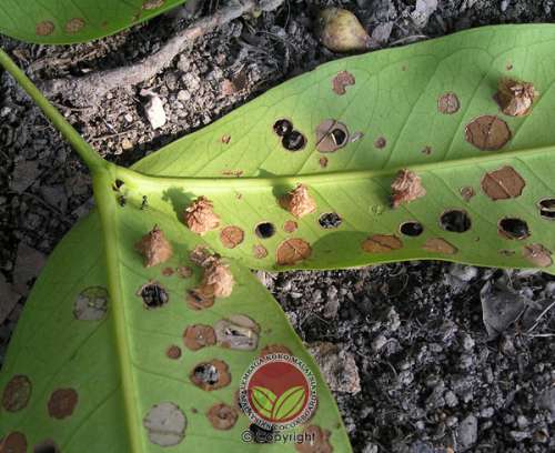 - Menjadikan daun mempunyai kesan luka bulatan bertompok-tompok