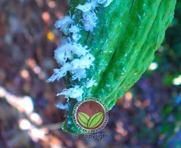 Buah yang diserang upbk mempunyai kesan tompokan kuning pada buah muda