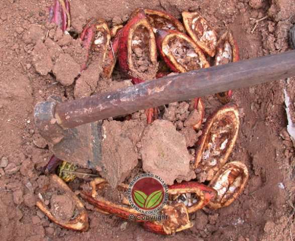 Kawalan dengan cara menanam kulit koko yang diserang