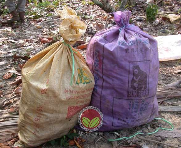 Kulit buah koko yang diserang boleh diletakkan didalam guni bagi mengurangkan serangan